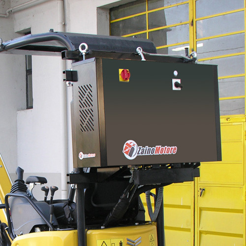 Applicando ZainoMotore il miniescavatore – di qualsiasi marca, nuovo o usato – ora può lavorare in elettrico (a 400 V) all’interno di capannoni, in qualsiasi interno (scuole, ospedali, ecc.), in centri storici e in tutti i luoghi dove sono proibite le emissioni dei gas di scarico dei motori diesel. A lavoro terminato l’operatore, da bordo macchina, potrà decidere di ritornare al funzionamento in versione diesel.